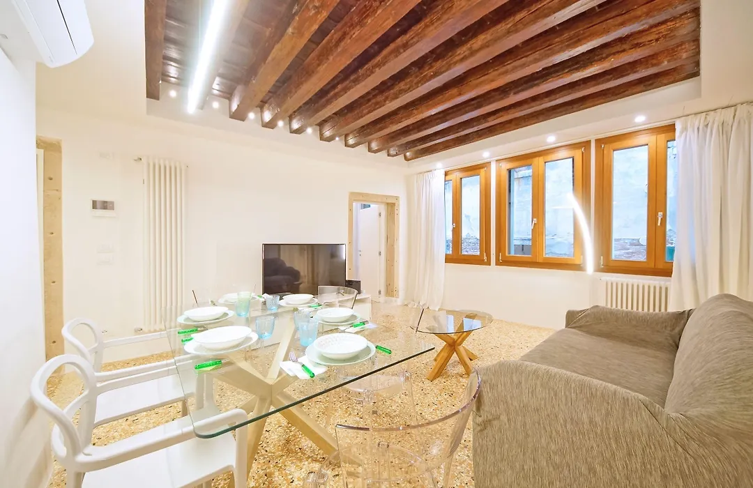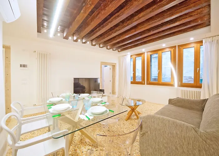 Das einladende Apartment ist in nur 600 Meter Entfernung vom Rialtomarkt und der Markusplatz liegt lediglich 1 km entfernt. Die 2-Zimmer-Dolcevita Apartments N 479 befindet sich im Stadtviertel San Polo von Venedig. Dieses Apartment ist in unmittelbarer Nähe vom Palazzo Vendramin-Calergi sowie in unmittelbarer Nähe von der Rialtobrücke gelegen.